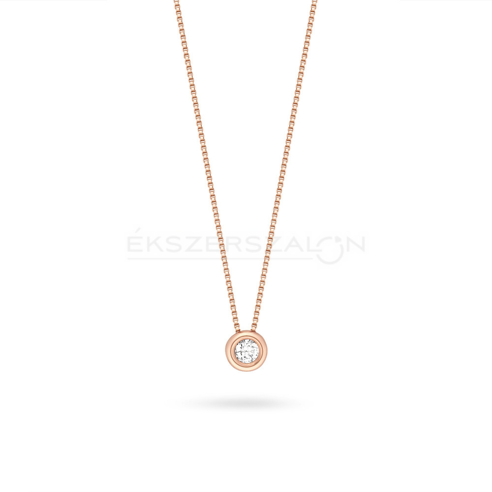 Rose gold arany nyaklánc, cirkónia köves, buton foglalatú csúszó medállal